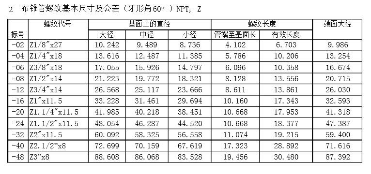 螺纹规格
